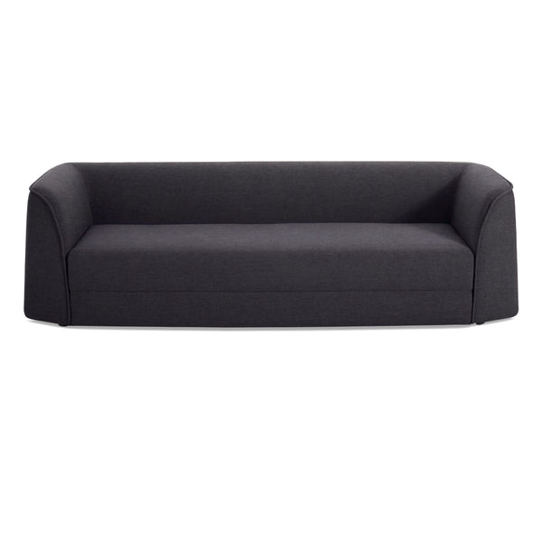 Unique curves and effortless conversion define the Thataway 102 Sleeper Sofa a piece that balances quirky charm with everyday usability At first glance it looks like a modern work of art with softly arched arms and a tight seat and back but it is more than just a statement piece This sofa hides a clever fold out design that transforms it into a comfortable sleeping surface in seconds The sturdy hardwood frame ensures it stays strong through years of lounging and sleeping High resiliency foam and webbing create a supportive seat without feeling too firm Upholstered in rich tones like Tofte Navy along with Maharam fabrics made from post consumer recycled polyester this sleeper sofa does more than sit pretty it contributes to a cleaner healthier home